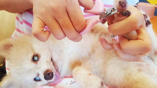 以前我都用舊款犬用指甲剪(必須將指甲套進圓洞裡才能剪),光套進圓洞這動作就讓老狗阿ken氣到不行拼命爭脫,像蟲一樣不斷扭動身體~我們一定得抱緊緊or用布將阿ken包得像木乃伊才能順利剪完~😂